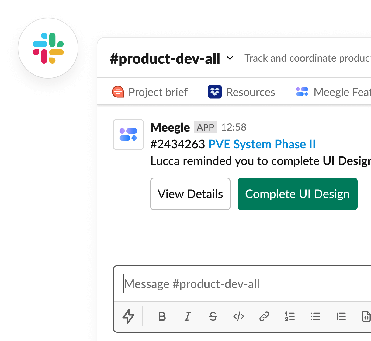 Get instant updates where your team talks the most. With Meegle’s Slack integration, you’ll never miss an important update or message, keeping your team connected no matter where they are.Simplify dev workflow. Stay aligned.